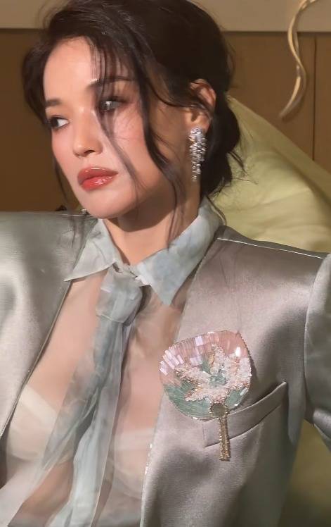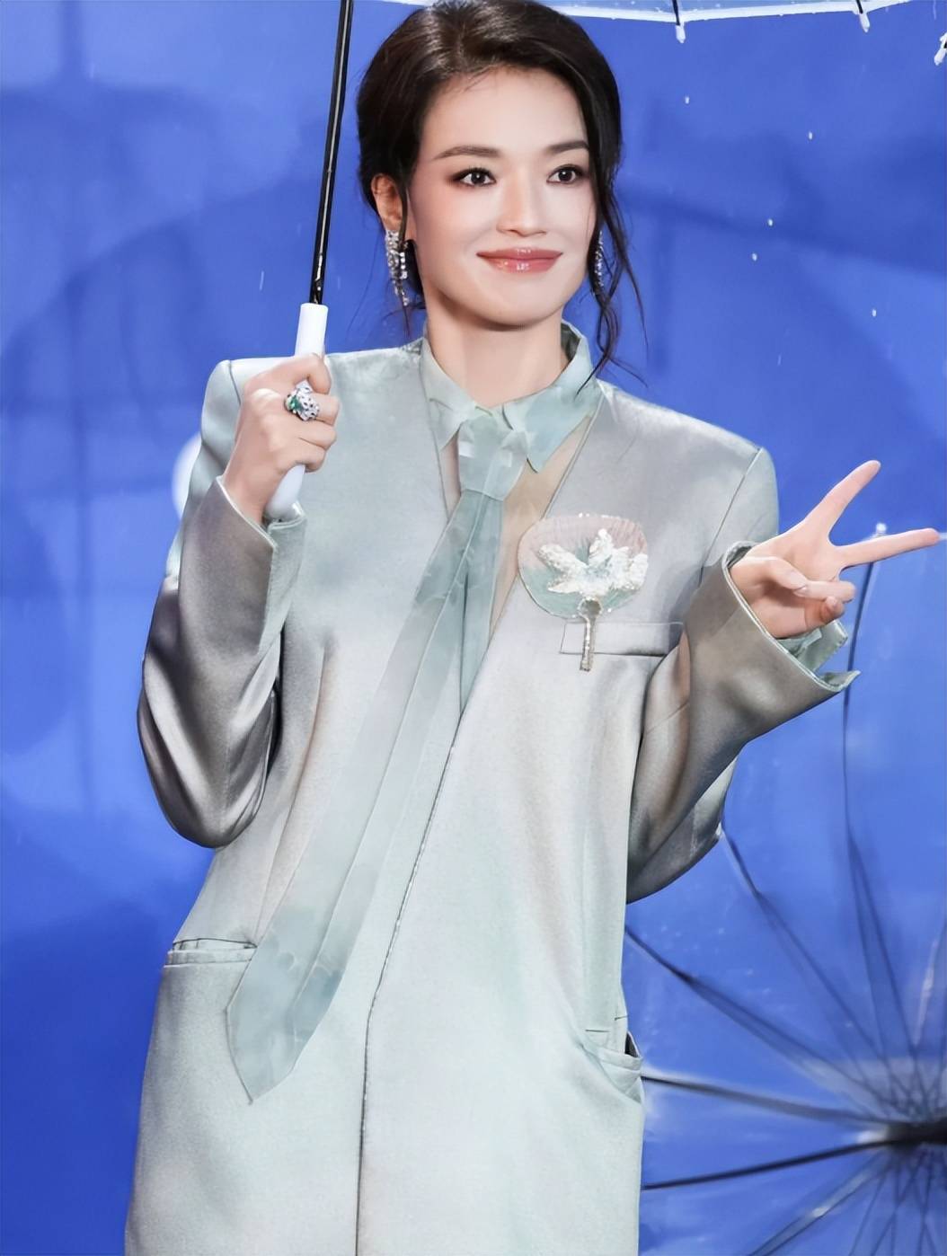 01 舒淇本以为舒淇会选择一条优雅的礼服长裙,没想到她这次穿了一身淡青色丝绸套装走上红毯。